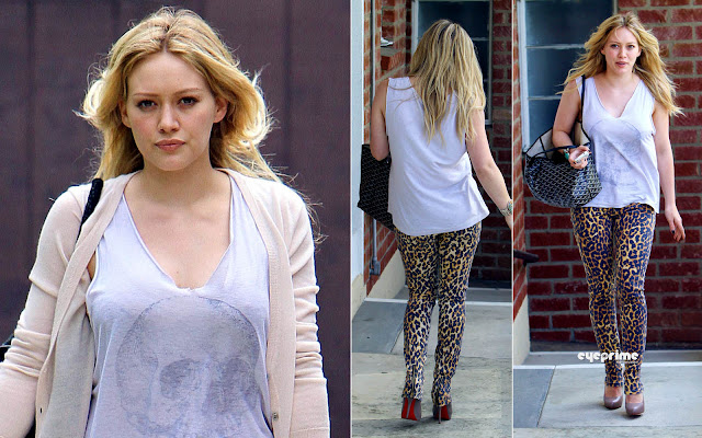 June 10, 2010 - Hilary Duff seen leaving a gym and heading to get a facial in Brentwood, CA. Hilary is rocking some leopard print pants and a skull t-shirt.