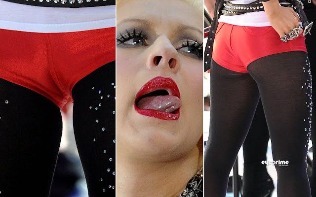XTina dons sparkly tights and some skin-tight red hot pants as she performs on The Today Show