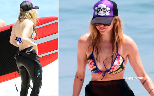 Avril Lavigne spotted paddle surfing in Malibu, Jul 4, 2010