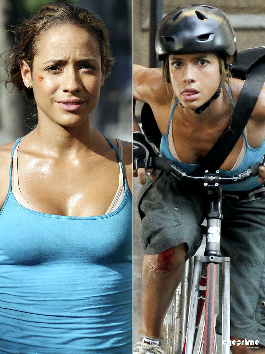 Dania Ramirez films "Premium Rush" in Harlem, Aug 20, 2010
