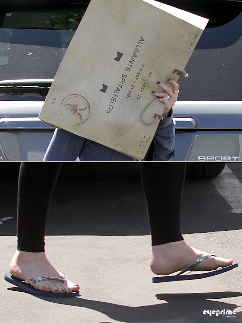 Michelle Trachtenberg covers her face with a shopping bag to avoid attention while shopping at Theory in Hollywood, August 24, 2010