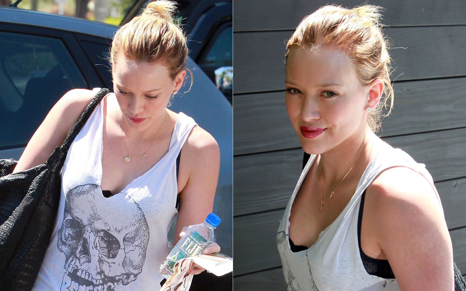 Newlywed Hilary Duff looks happy and healthy as she leaves a salon in Beverly Hills, CA on August 19, 2010 wearing a lovely dark shade of lipstick.